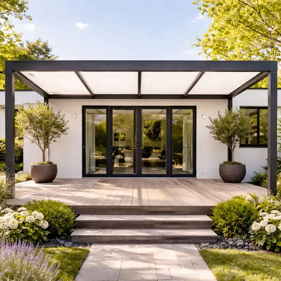 Cette pergola voiture au design moderne à l'architecture parfaite peut être assimilé grâce à sa longueur à un carport 2 voitures.