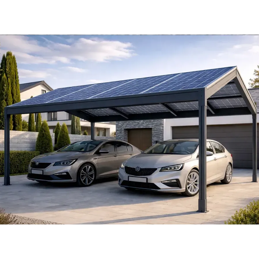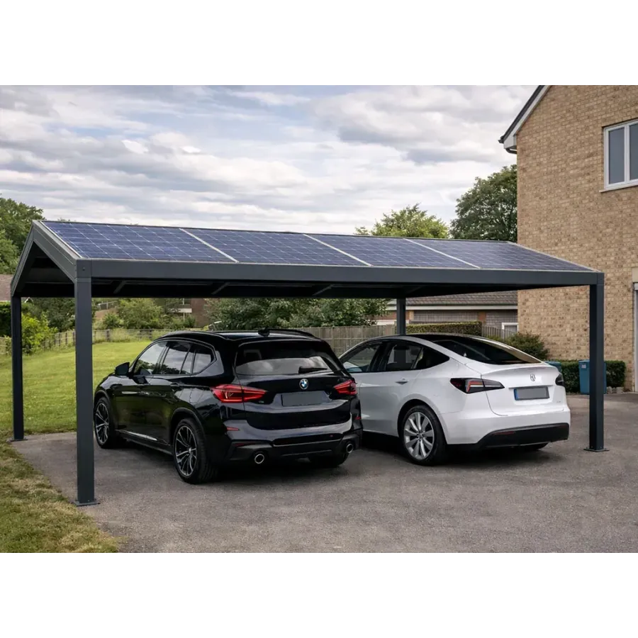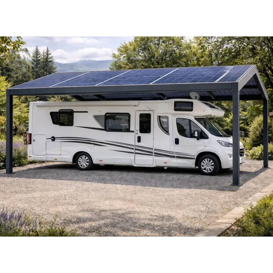 Le carport solaire double pente à panneaux photovoltaïque 100 % solaire mérite une belle couleur !
