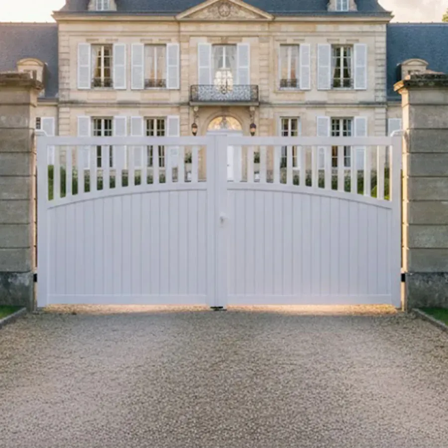 Votre Portail Aluminium Battant vous attends avec votre coloris RAL et vos dimensions précises au mm. Le portail classique KIMI tout en profilés aluminium haut de gamme est un ouvrant à 2 vantaux, à prix extra . Le procédé de laquage est certifié par les labels : QUALICOAT et QUALIMARINE. Les exigences Européennes en termes de développement durable sont respecter en utilisant des laques sans chrome.