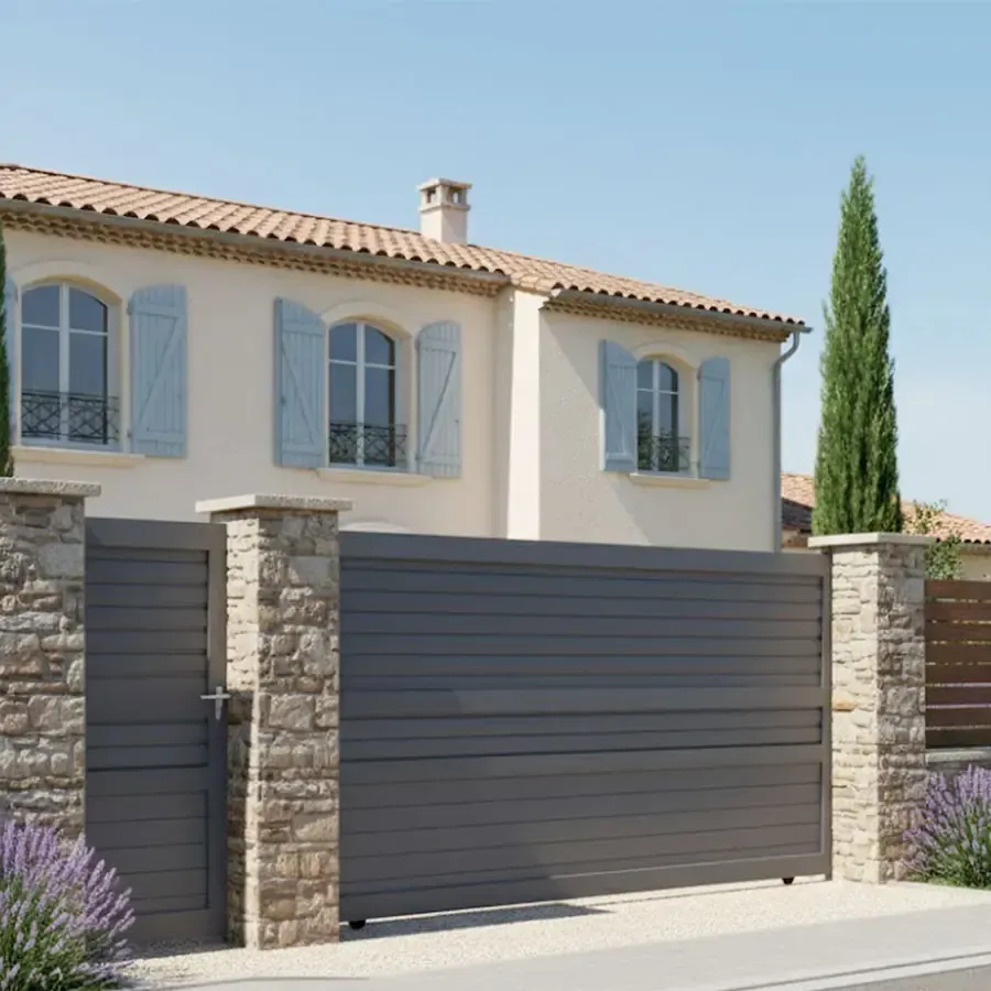 Votre vieille clôture à besoin d’un bon coup de jeunesse, alors foncez vite et choisissez votre Portail Coulissant, tout en aluminium, coulissant à manœuvre manuelle modèle DAD. Portail motorisable à votre convenance. Envie d’un portail gris anthracite ou toute autre couleur, vous avez le choix dans notre palette de teinte RAL. Le laquage est certifié par les meilleurs labels : QUALICOAT et QUALIMARINE. Les exigences Européennes en termes de développement durable sont respecter en utilisant des laques sans chrome.