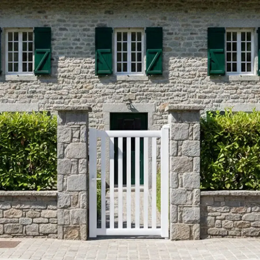 Voici votre Portillon à 1 Vantail tout en aluminium modèle DEN qui est ajourés avec ses barreaux verticaux ce qui lui confère de la légèreté et une beauté particulière. Mais soyez en sûr il est très costaud ! Il se manœuvre facilement avec sa béquille double et est sécurisé avec sa serrure à 1 point avec son cylindre Européen. Commandez-le sans plus attendre. Le laquage est certifié par les meilleurs labels : QUALICOAT et QUALIMARINE. Les exigences Européennes en termes de développement durable sont respecter en utilisant des laques sans chrome.