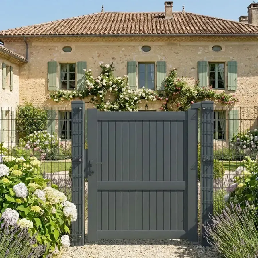 Voici pour vous le Portillon Aluminium Battant modèle MEL. Ce Portillon Haut de Gamme est fait pour vous et votre façade extérieure. A prix discount et livrer chez vous, directement depuis l’usine, votre portillon entièrement en profilés aluminium n’attends plus que vous ! Le procédé de thermolaquage est certifié par les meilleurs labels : QUALICOAT et QUALIMARINE. Les exigences Européennes en termes de développement durable sont respecter en utilisant des laques sans chrome.