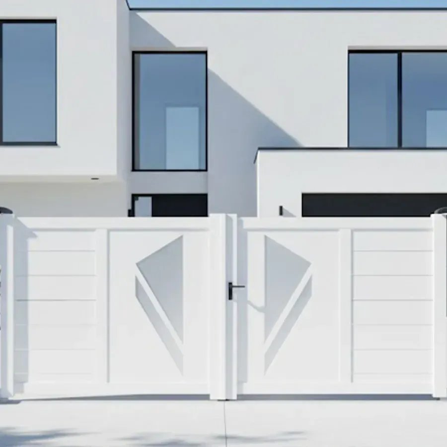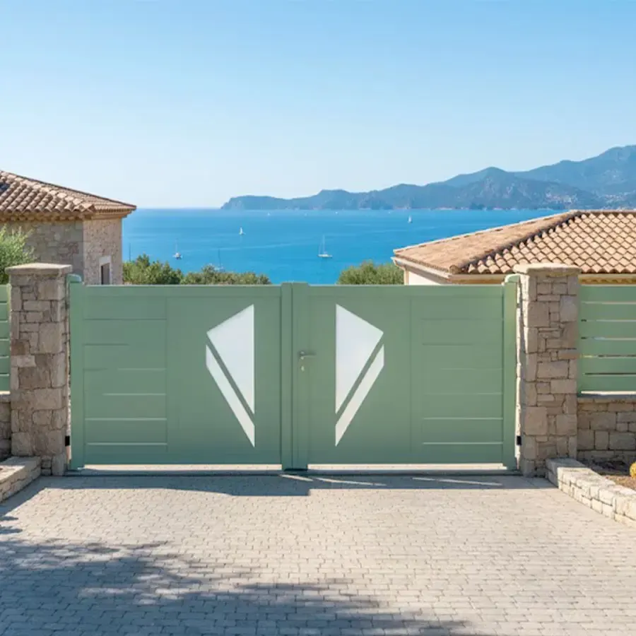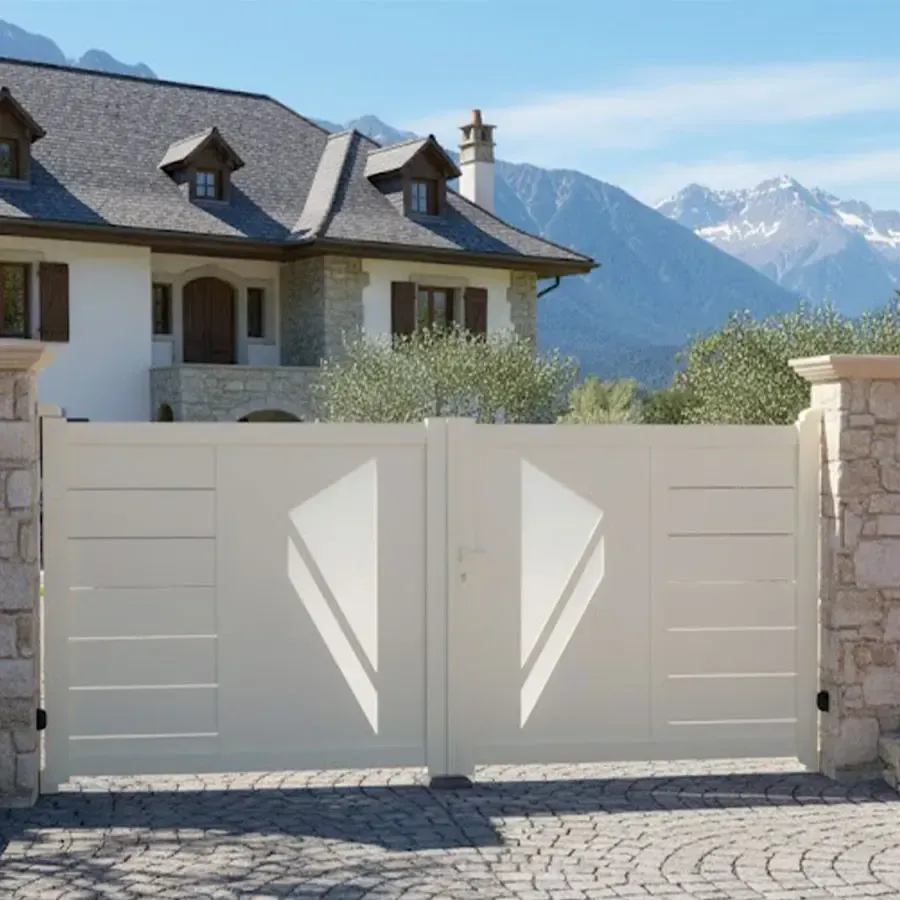 Avec ses battants qui s'ouvrent vers l'intérieur ou l'extérieur selon vos préférences, le portail alu battant moderne Pribi offre une praticité sans pareille. Son mécanisme fluide et silencieux assure un fonctionnement aisé au quotidien, vous offrant un confort inégalé.