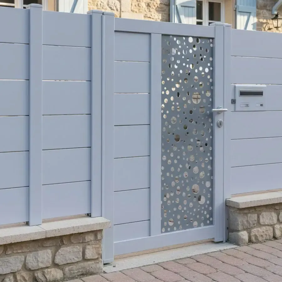 Votre clôture actuelle doit être changée alors allez regarder ici le Portillon Extérieur battant à 1 vantail tout en aluminium de conception moderne à manoeuvre manuelle et serrure simple à cylindre Européen avec béquille double. Avec le modèle BARBUDA vous trouverez VOTRE portillon qui sera fabriqué suivant vos envies et profiter d’un vrai Prix Discount ! Le procédé de thermo laquage est certifié par les meilleurs labels : QUALICOAT et QUALIMARINE. Les exigences Européennes en termes de développement durable sont respecter en utilisant des laques sans chromeExcellent rapport qualité / prix