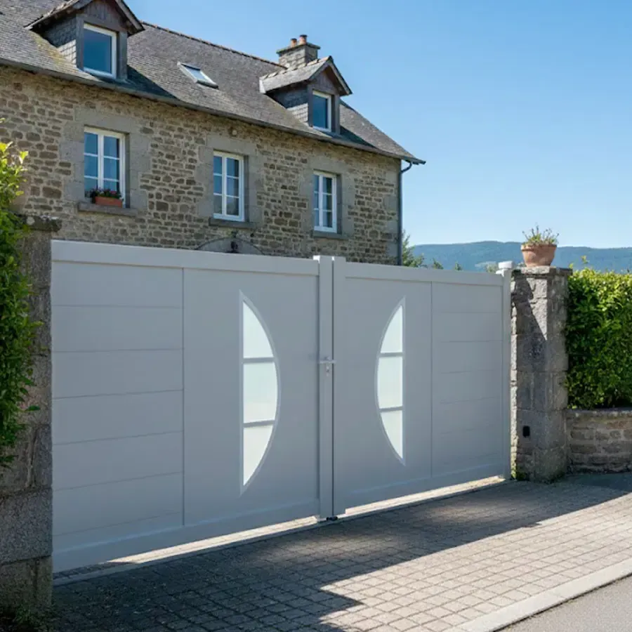 Vous voulez acquérir un Portail à 2 Vantaux en aluminium au meilleur prix du marché? Chez Fermeture Online vous avez à bas juste votre Portail Aluminium Battant à deux vantaux BYL. Livrer, très bien protégé, chez vous directement depuis l'unité de fabrication sans cout supplémentaire.Le procédé de thermo laquage est certifié par les meilleurs labels : QUALICOAT et QUALIMARINE. Les exigences Européennes en termes de développement durable sont respecter en utilisant des laques sans chrome.