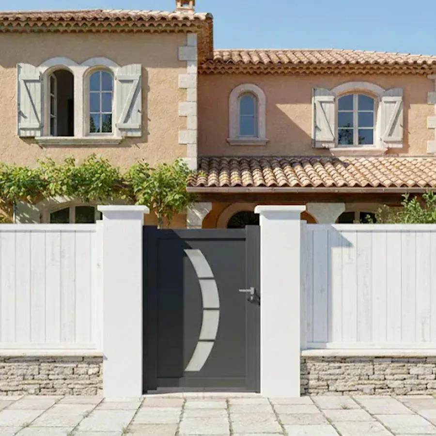 Un portillon 1m00 ou autres dimensions de votre choix ? Ne cherchez plus, vous avez ici votre Portillon Battant Aluminium modèle DALL qui sera fabriquer pour vous avec vos côtes précises en longueur. Avec le modèle DALL vous trouverez VOTRE portillon qui sera fabriqué suivant vos envies et profiter d’un prix discount ! Le procédé de thermo laquage est certifié par les meilleurs labels : QUALICOAT et QUALIMARINE. Les exigences Européennes en termes de développement durable sont respecter en utilisant des laques sans chrome.