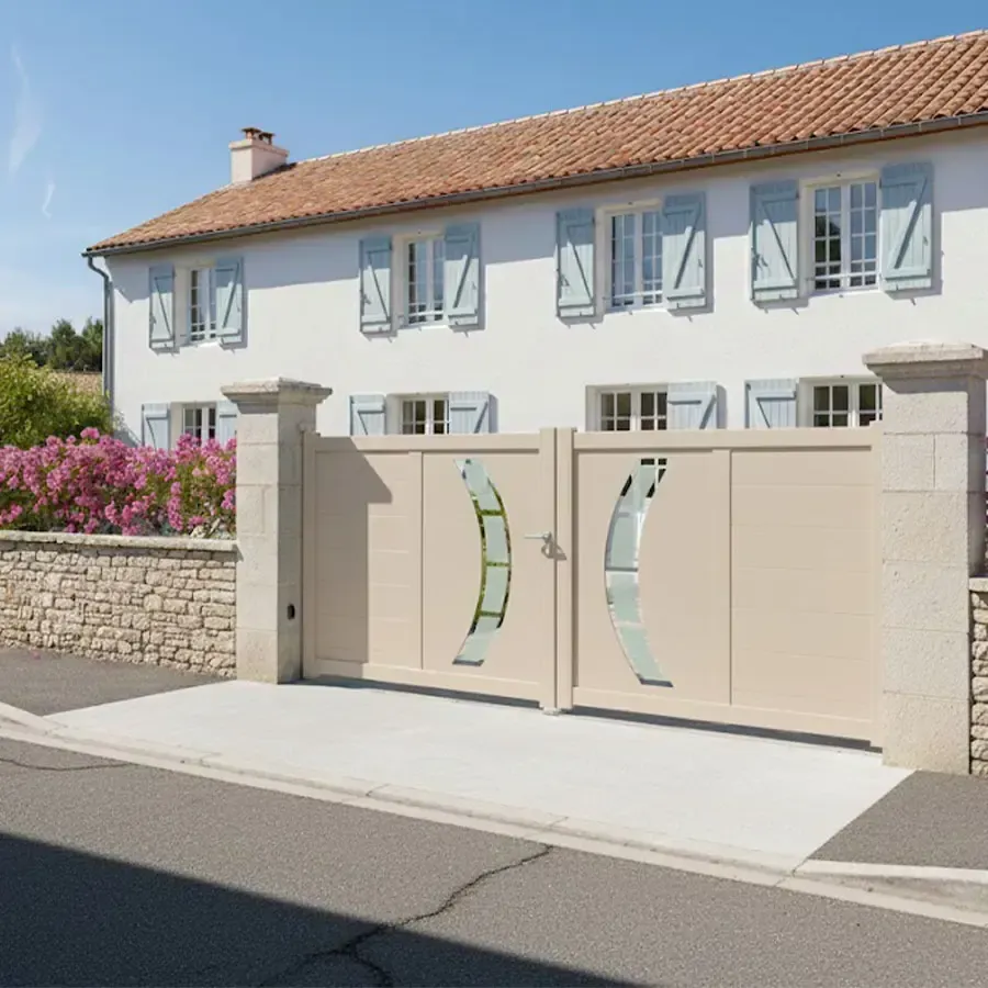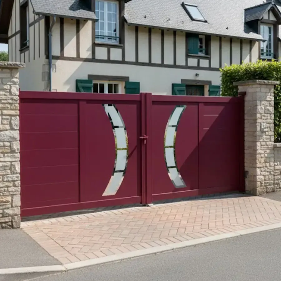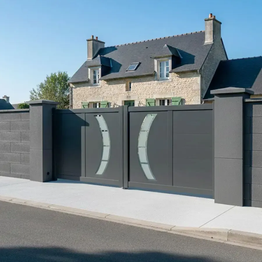 Pour un prix vraiment étudié au plus juste avec une finition professionnelle haut de gamme et garantie vous pouvez commander chez nous votre Portail Aluminium à 2 Vantaux égaux battants, au coloris RAL de votre choix et à vos côtes précises au millimètre près. Allez configurer votre portail aluminium en ligne.Le procédé de thermo laquage est certifié par les meilleurs labels : QUALICOAT et QUALIMARINE. Les exigences Européennes en termes de développement durable sont respecter en utilisant des laques sans chrome.