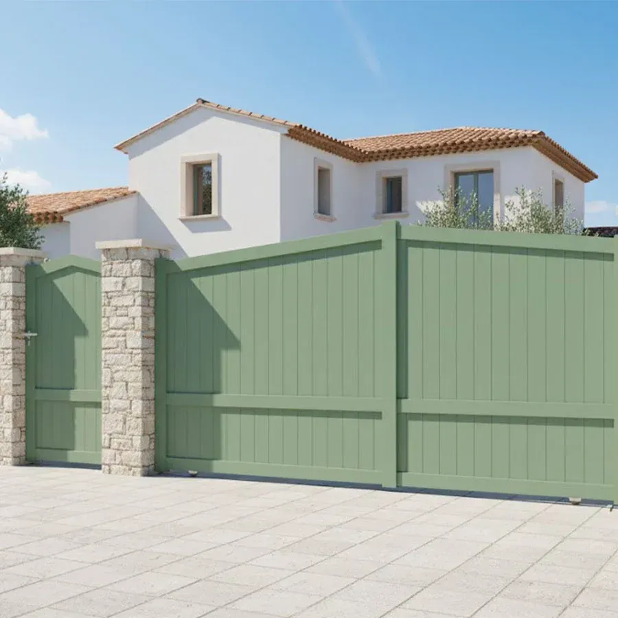 Le Portail Exterieur Coulissant SEA à 1 vantail tout en aluminium de conception moderne, sera fabriqué suivant vos envies et livré, entièrement protégé et emballé, directement chez vous depuis l’usine de production sans aucun intermédiaire ce qui vous permet de profiter d’un prix vraiment bas ! Le procédé de thermo laquage est certifié par les meilleurs labels : QUALICOAT et QUALIMARINE. Les exigences Européennes en termes de développement durable sont respecter en utilisant des laques sans chrome.