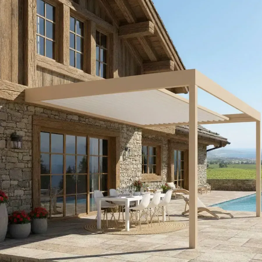 Pensez y maintenant pour votre pergola bioclimatique rétractable lames parallèles à prix discount.