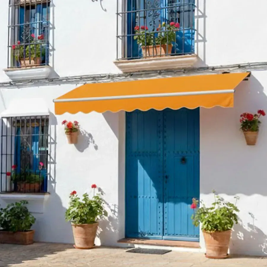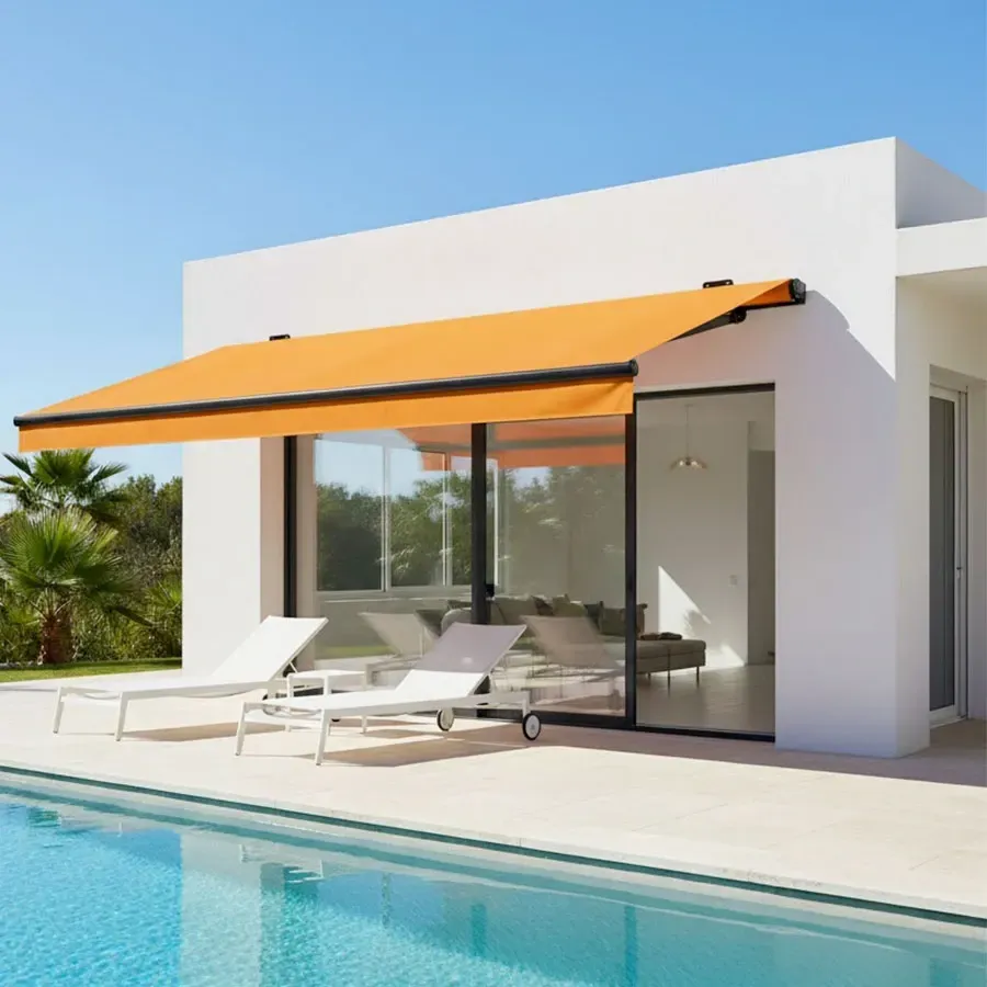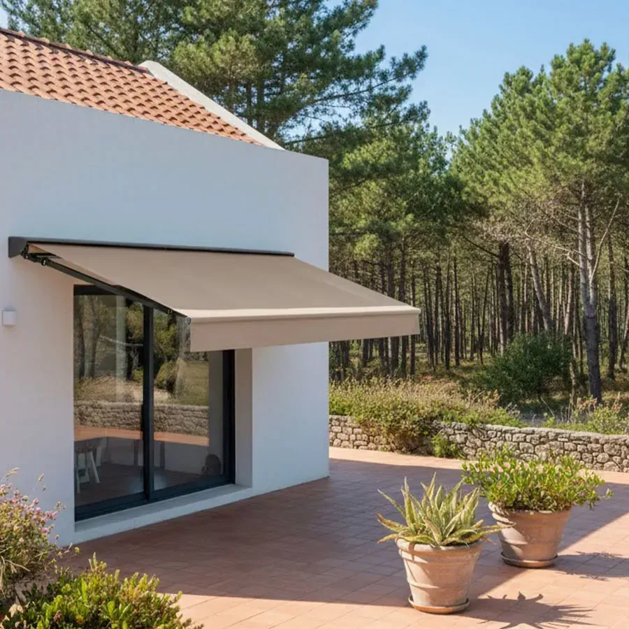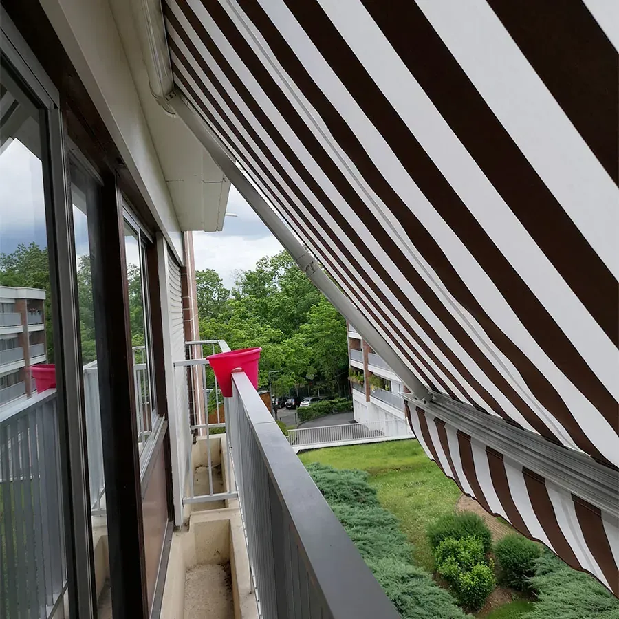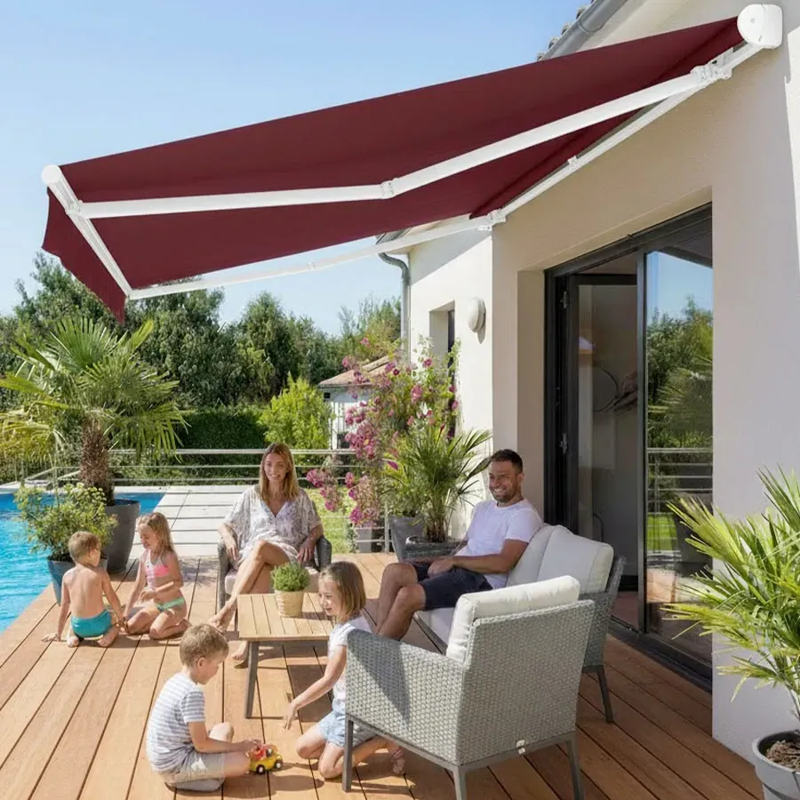 Store Banne Manuel avec treuil ou motorisé avec télécommande sur mesure ou standard avec auvent de protection en option.