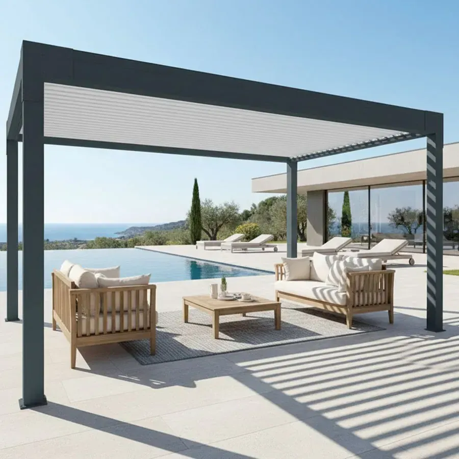 Pensez y maintenant pour votre pergola bioclimatique rétractable lames parallèles à prix discount.