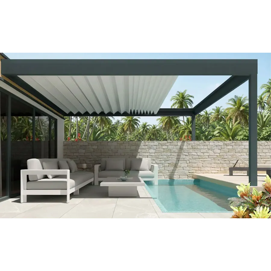 Optez pour la Pergola à Lames Rétractables Accordéon Ilot, conçue pour répondre aux exigences des particuliers comme des professionnels. Alliez design, fonctionnalité et liberté d’installation avec une solution hautement performante et offrez une vraie valeur ajoutée à votre espace de bien être.