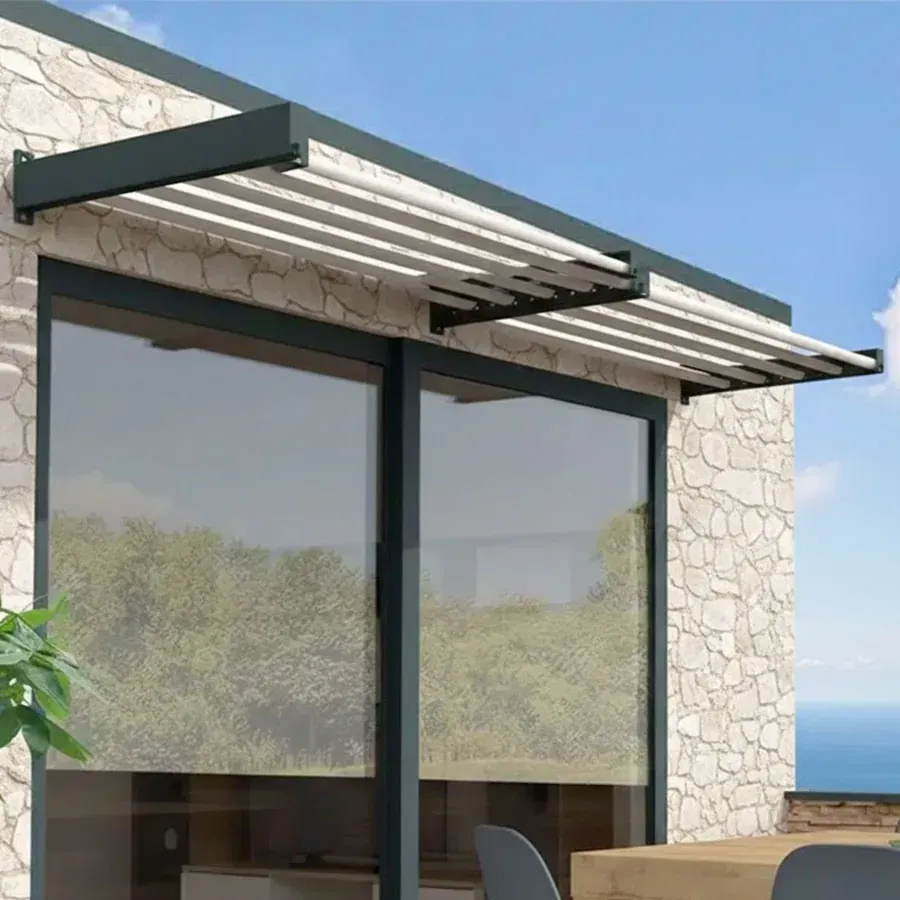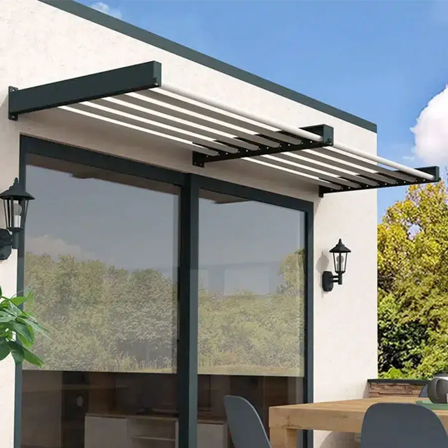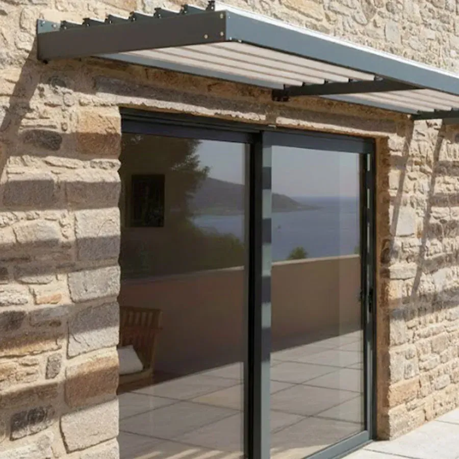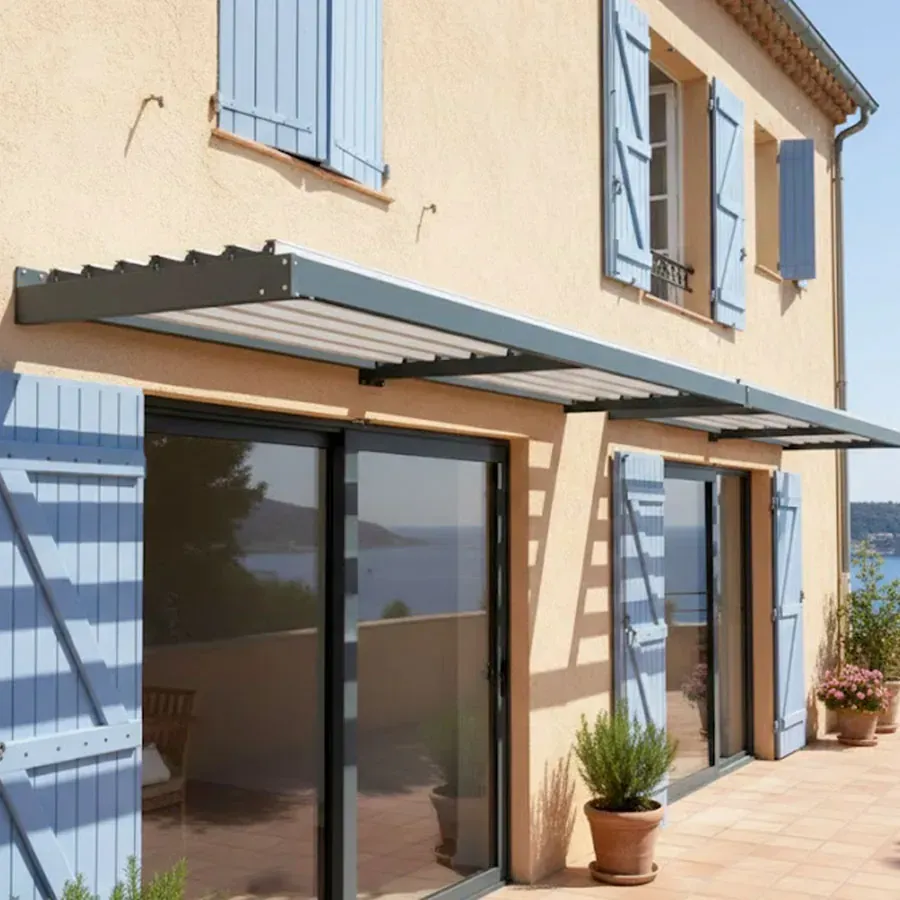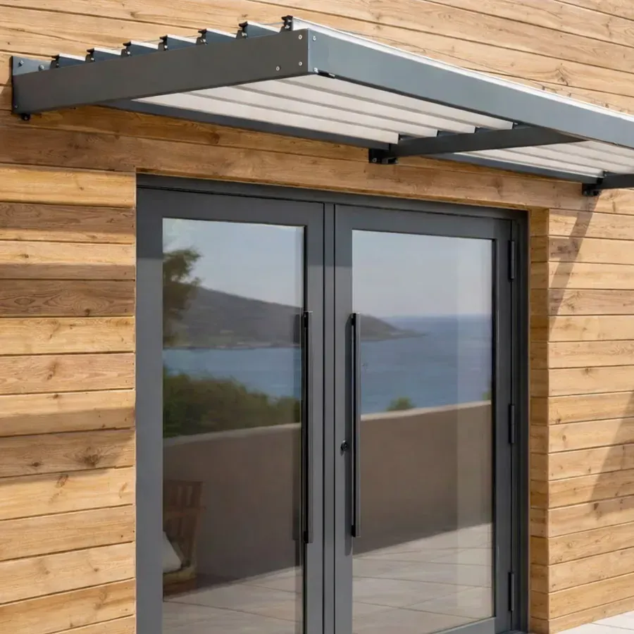 L’auvent est particulièrement facile à installer, car il repose sur une structure minimale avec des pattes de fixation murale. Son toit se suffit à lui-même pour couvrir la terrasse ou l’entrée de chez vous, d’un magasin, d’un immeuble.