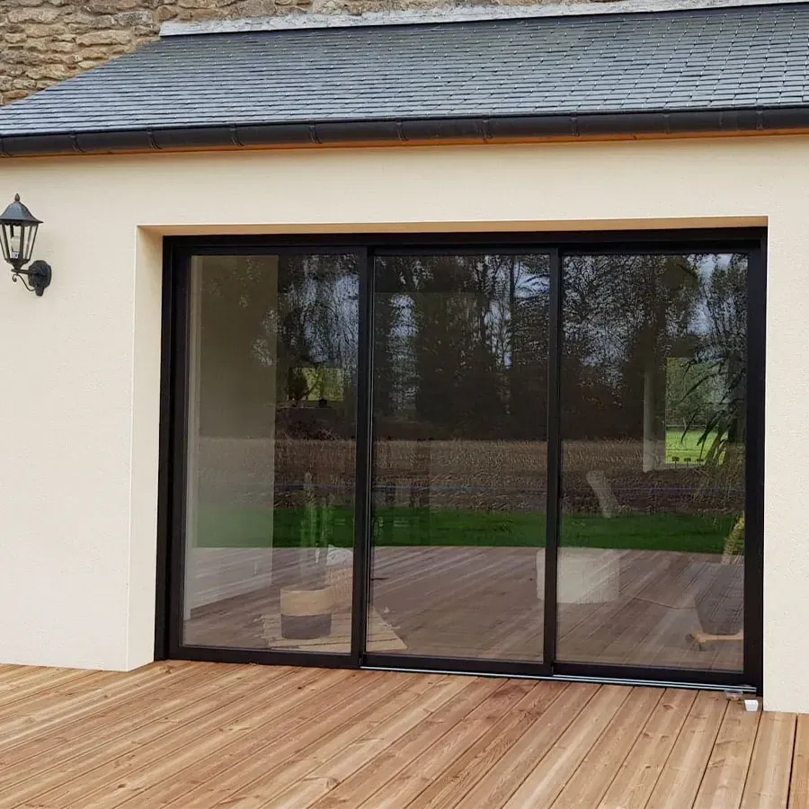 Coulissant à 3 Vantaux sur 3 rails aluminium avec vitrage isolant clair 4/20 argon/4 FE intercalaire noir inclus dans prix de base.