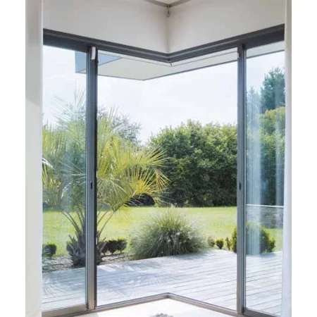 Découvrez sans plus attendre le Coulissant d'Angle à Galandage, sans poteau d'angle, en Aluminium, à Rupture de Pont Thermique, à 2 Vantaux.